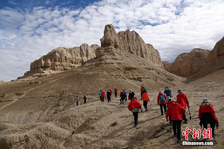 圖為科考隊員在遺址區(qū)域內(nèi)徒步調(diào)查。中新社記者 孫自法 攝