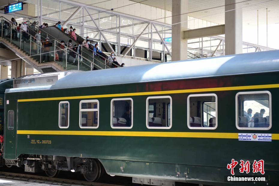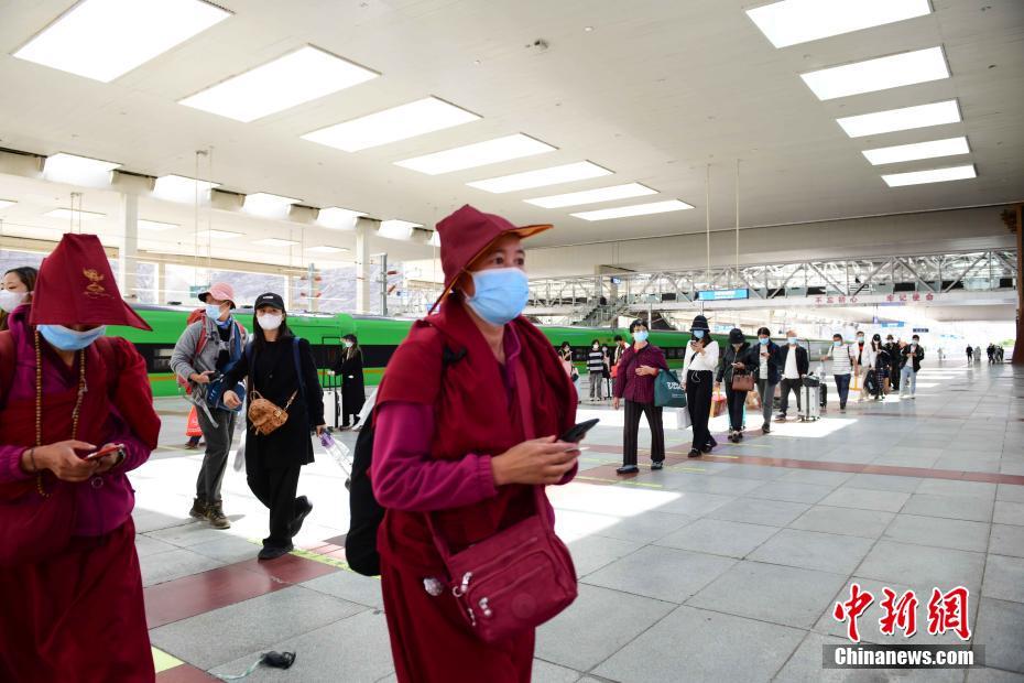 8月11日,旅客有序來到鐵路拉薩站站臺上。據(jù)悉,自本次疫情發(fā)生以來拉薩火車站日均離藏運(yùn)送旅客數(shù)量約6000人次,貢嘎機(jī)場累計出港旅客約2萬人次。 中新社記者 貢嘎來松 攝