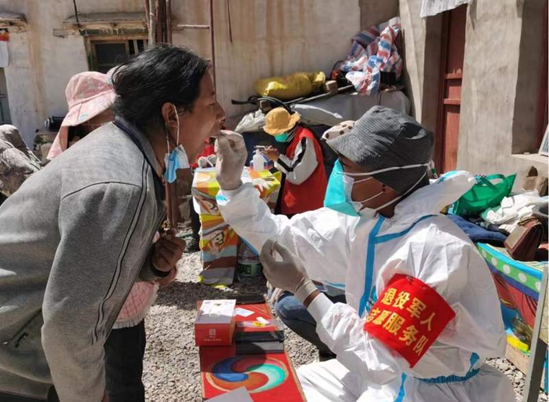 退役軍人志愿服務隊為群眾進行核酸采樣。圖片由阿里地區(qū)改則縣新時代文明實踐中心提供