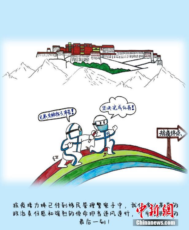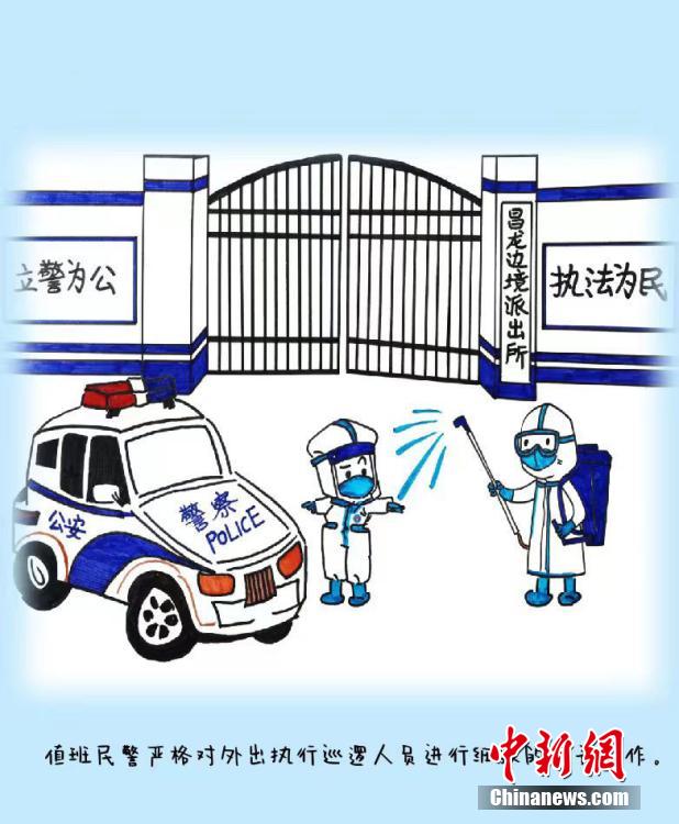 來(lái)自四川省宜賓學(xué)院的沈文靜是西藏日喀則邊境管理支隊(duì)昌龍邊境派出所教導(dǎo)員胡浩的妻子,7月26日來(lái)隊(duì)探親,此后遭遇西藏疫情暴發(fā)。在派出所抗疫期間,沈文靜拿起畫筆,將奮戰(zhàn)在抗疫一線的移民管理警察身影描繪記錄下來(lái),用漫畫的方式生動(dòng)再現(xiàn)西藏移民管理警察的戰(zhàn)“疫”人物群像。沈文靜 繪 龍小鳳 文