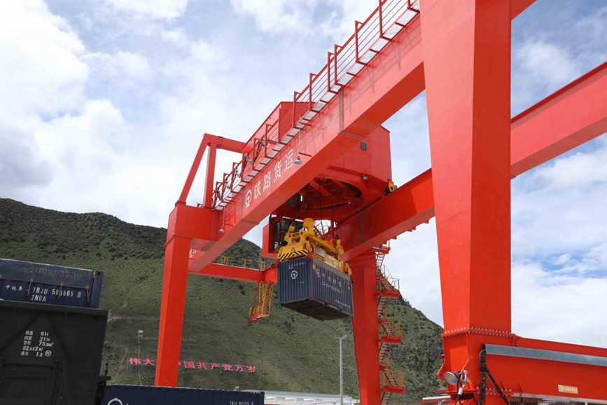 林芝站貨場內(nèi),集裝箱門吊不停的作業(yè),一車車貨物不停的裝運,一個個忙碌的身影也清晰可見,他們用堅守換來拉林鐵路貨物的安全運輸,也為林芝市物資保障貢獻了一份力量。