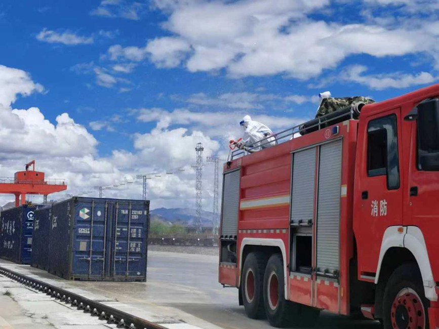 拉薩西站聯(lián)系堆龍德慶區(qū)乃瓊街道防疫部門組織堆龍消殺隊(duì),對拉薩西站東門區(qū)域、中風(fēng)險(xiǎn)區(qū)宏順裝卸宿舍樓內(nèi)及大門進(jìn)行專業(yè)、全面、系統(tǒng)性消殺;日喀則站聯(lián)系市疫情防控部門消殺組,對林瑞達(dá)裝卸隊(duì)院內(nèi)、貨運(yùn)職工、裝卸隊(duì)住宿樓進(jìn)行;那曲站聯(lián)系市消防部門對車站、站臺、貨場等重要場所進(jìn)行專業(yè)、全面、系統(tǒng)性消殺。