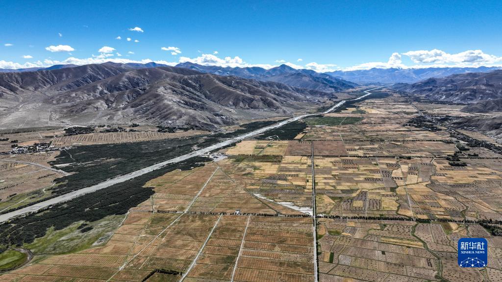 西藏日喀則江孜段富饒的農(nóng)田(9月19日攝,無人機照片)。新華社記者 晉美多吉 攝