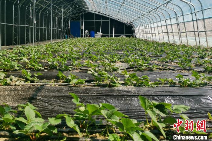 西藏康馬縣高原溫室大棚里的草莓,預(yù)計10月可采摘?!∈茉L者供圖