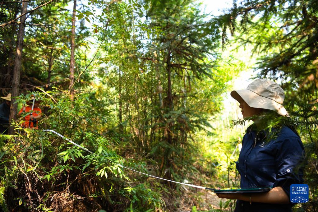 9月22日,白拉曲珍在位于廣東韶關樂昌市張溪村的生態(tài)監(jiān)測樣地工作。新華社記者 鄧華 攝