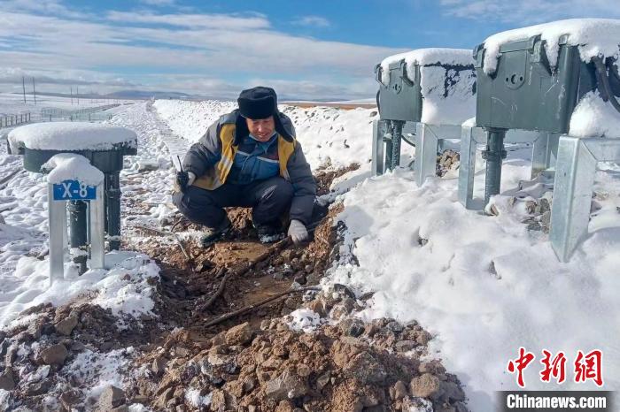 在唐古拉山地區(qū),空氣中的含氧量不足平原地區(qū)的50%,一個看似簡單而又行云流水的檢查作業(yè),一套下來,工作人員們氣喘吁吁。“今天唐古拉的天氣還不錯,風也不大。”帽檐上、眉毛上結滿了霜花的梁海峰一邊檢查一邊說。