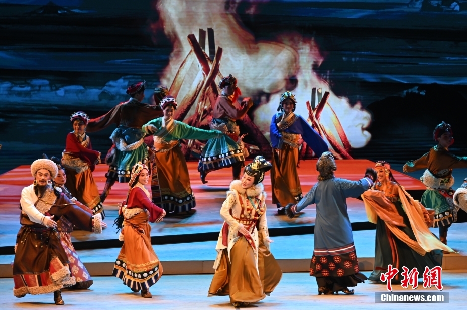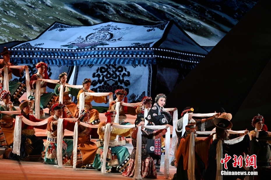10月11日晚,大型新編歷史粵劇《文成公主》在廣東廣州大劇院首演。該劇以文成公主和親進藏的歷史事件為依據(jù)創(chuàng)作,講述了文成公主堅守吐蕃四十年,促進了吐蕃經(jīng)濟、文化的發(fā)展,加強了漢藏人民的友好關(guān)系。 中新社記者 陳楚紅 攝