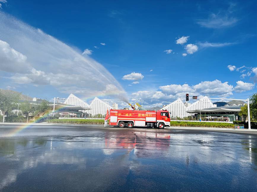 2022年8月13日,一條《彩虹下的心愿,愿疫情早日退去》的視頻刷爆拉薩市民的朋友圈,視頻中消防指戰(zhàn)員化身“大白”,逆行而上,在拉薩主城區(qū)以社區(qū)網(wǎng)格為基本單位開展消殺。當(dāng)天,消防車30輛、指戰(zhàn)員146人集體出動(dòng),噴灑而出的消毒液在陽(yáng)光下形成了一道道彩虹。