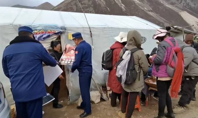 圖為山南市消防救援支隊(duì)在蟲草采集點(diǎn)開展消防宣傳。