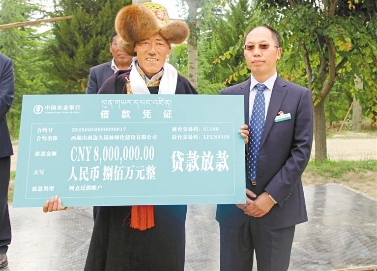 農(nóng)行山南分行為山南邊久園林有限公司發(fā)放西藏自治區(qū)首筆林權抵押貸款。