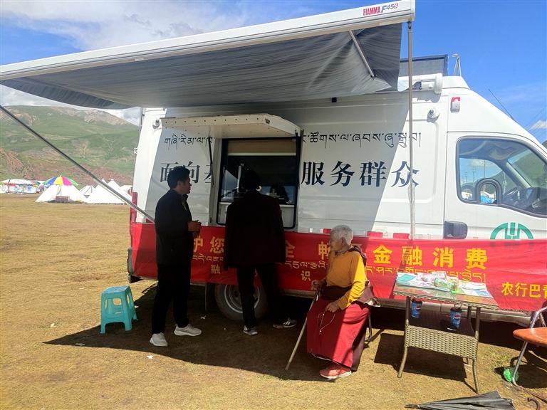 農(nóng)行西藏分行員工輔導客戶使用掌上銀行辦理業(yè)務。