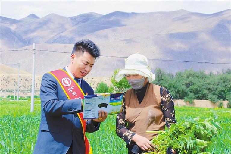 農(nóng)行拉薩分行員工走進田間地頭為農(nóng)牧民普及金融知識。