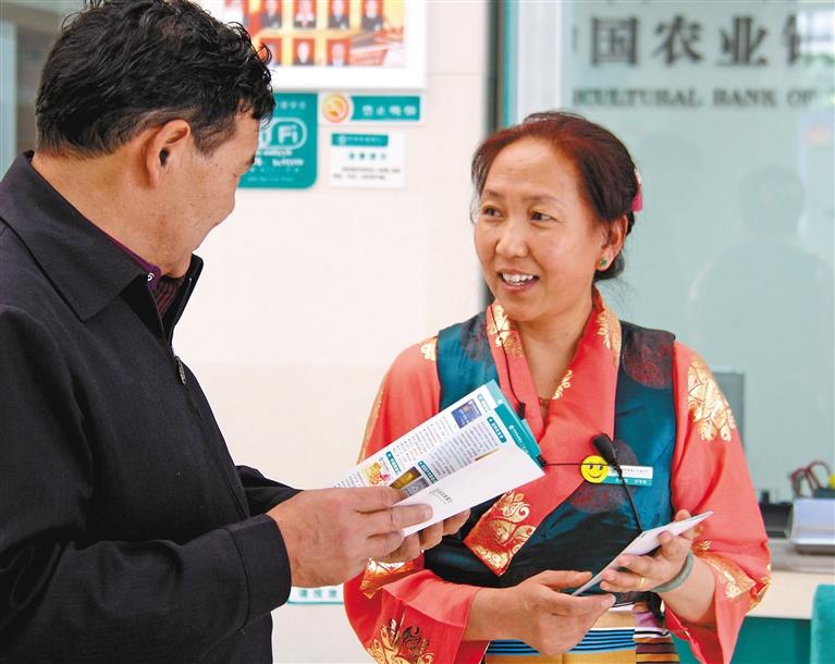 圖為農(nóng)行山南分行員工向客戶宣傳普及金融知識。