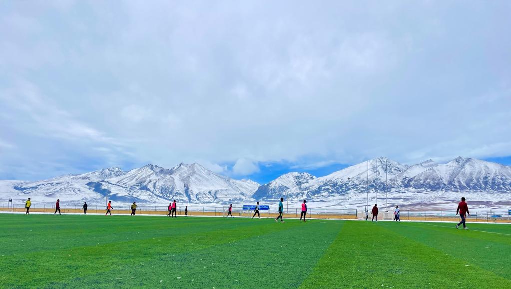 這是那曲市嘉黎縣中學(xué)的足球場(chǎng)(3月30日攝)