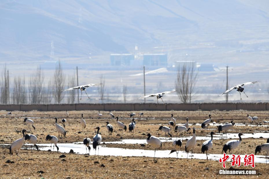 每年的10月底,成群的黑頸鶴飛到西藏拉薩市林周縣越冬,在拉薩市林周縣周邊的湖泊濕地度過(guò)5個(gè)月的“閑云野鶴”生活,次年三四月份再飛向藏北草原繁殖。黑頸鶴是世界上唯一一種高原鶴類。具有足長(zhǎng)、喙長(zhǎng)、頸長(zhǎng)的典型涉禽類特征,適合在沼澤地里行走。黑頸鶴的頸、尾為黑色,體羽為灰白色。黑頸鶴是國(guó)家一級(jí)保護(hù)動(dòng)物。目前,每年到林周縣越冬的黑頸鶴已達(dá)2000只左右。圖為黑頸鶴在林周境內(nèi)的農(nóng)田里覓食、嬉戲。 貢嘎來(lái)松 攝