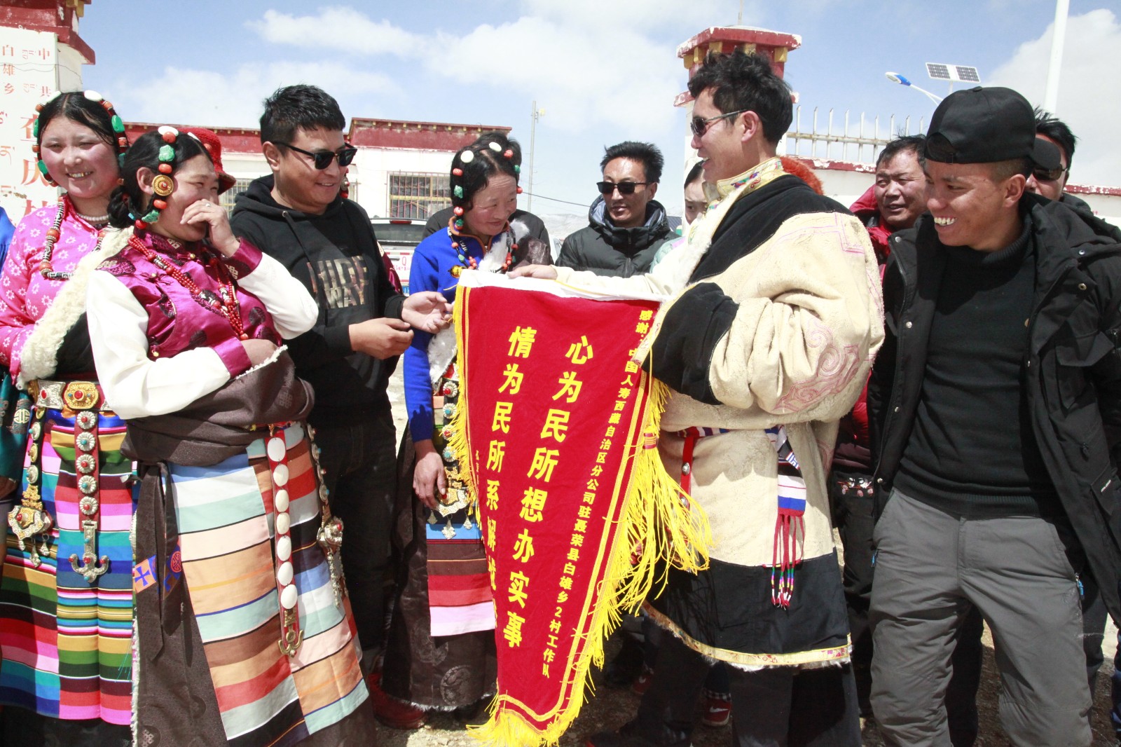 圖為中國人壽西藏分公司三個(gè)駐村點(diǎn)均如期實(shí)現(xiàn)整村脫貧,駐村工作隊(duì)持續(xù)開展工作鞏固脫貧成果,白雄鄉(xiāng)查慶村干部群眾為公司駐村工作隊(duì)送上錦旗表示感謝。