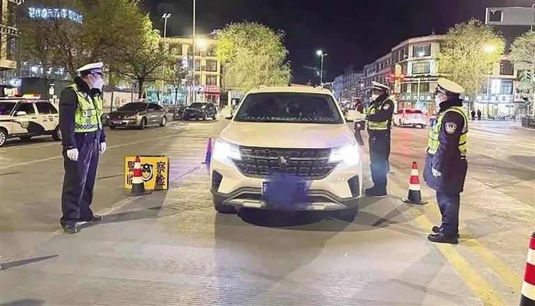 拉薩交警開展夜查酒駕統(tǒng)一行動。圖由拉薩交警提供