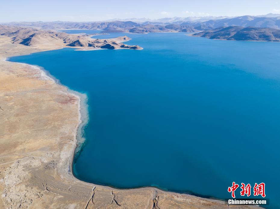 近日,西藏自治區(qū)山南市羊卓雍錯(cuò)(簡(jiǎn)稱羊湖),冬日由于沒(méi)有云層遮擋,湖水更顯深藍(lán)、孔雀藍(lán)。航拍視角下,湖水像巨大的寶石鑲嵌于高原大地,風(fēng)光壯麗。羊卓雍錯(cuò)藏語(yǔ)意為“碧玉湖”,湖面海拔4441米,與納木錯(cuò)、瑪旁雍錯(cuò)并稱西藏三大“圣湖”。圖為冬日羊湖湖水呈現(xiàn)為“寶石藍(lán)”。 江飛波 攝