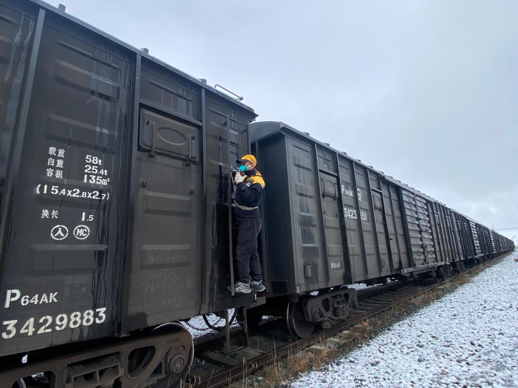 平均海拔超過(guò)4500米的西藏那曲市色尼區(qū)剛下完一場(chǎng)大雪,寒風(fēng)呼嘯。重復(fù)爬車下車,彎腰摘接風(fēng)管,大聲準(zhǔn)確喊出聯(lián)控用語(yǔ),緊接著撤除車列的防溜措施,青藏鐵路那曲火車站調(diào)車長(zhǎng)達(dá)瓦次仁忙完一組調(diào)車作業(yè)后,嘴唇發(fā)紫、臉頰通紅,需要馬上吸氧才能緩過(guò)勁。