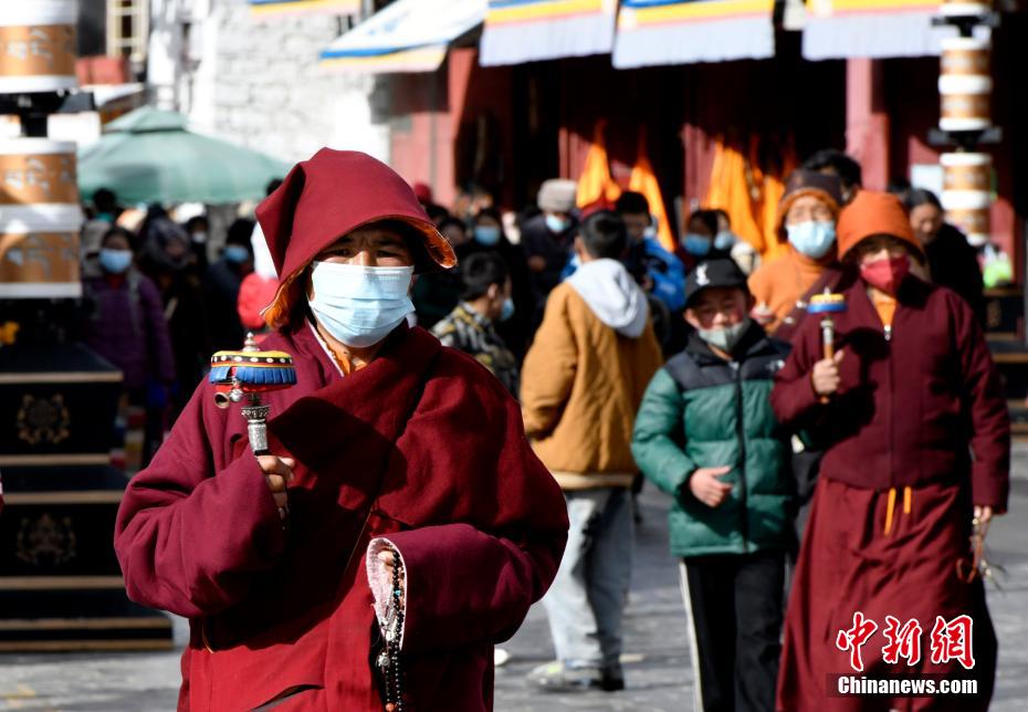 1月12日,西藏拉薩,僧侶圍繞八廓街轉(zhuǎn)經(jīng)。 李林 攝