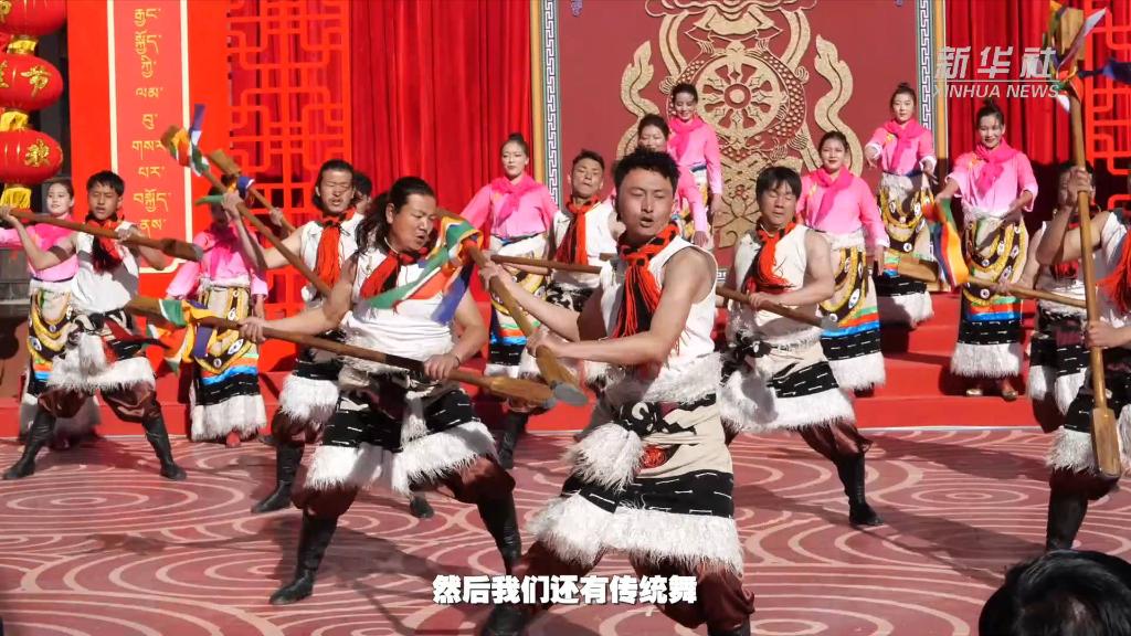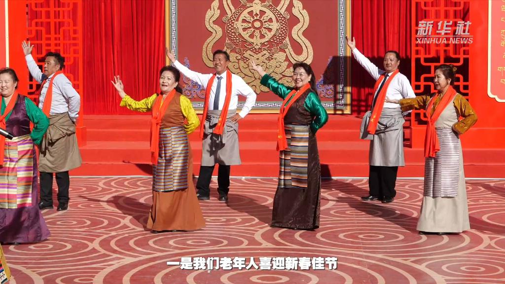 農歷癸卯兔年春節(jié)大年初一,西藏拉薩市娘熱街道吉蘇4組的村民們身著節(jié)日盛裝,在家門口觀看娘熱民間藝術團演繹的2023年西藏“啟航新征程 幸福中國年”村晚。