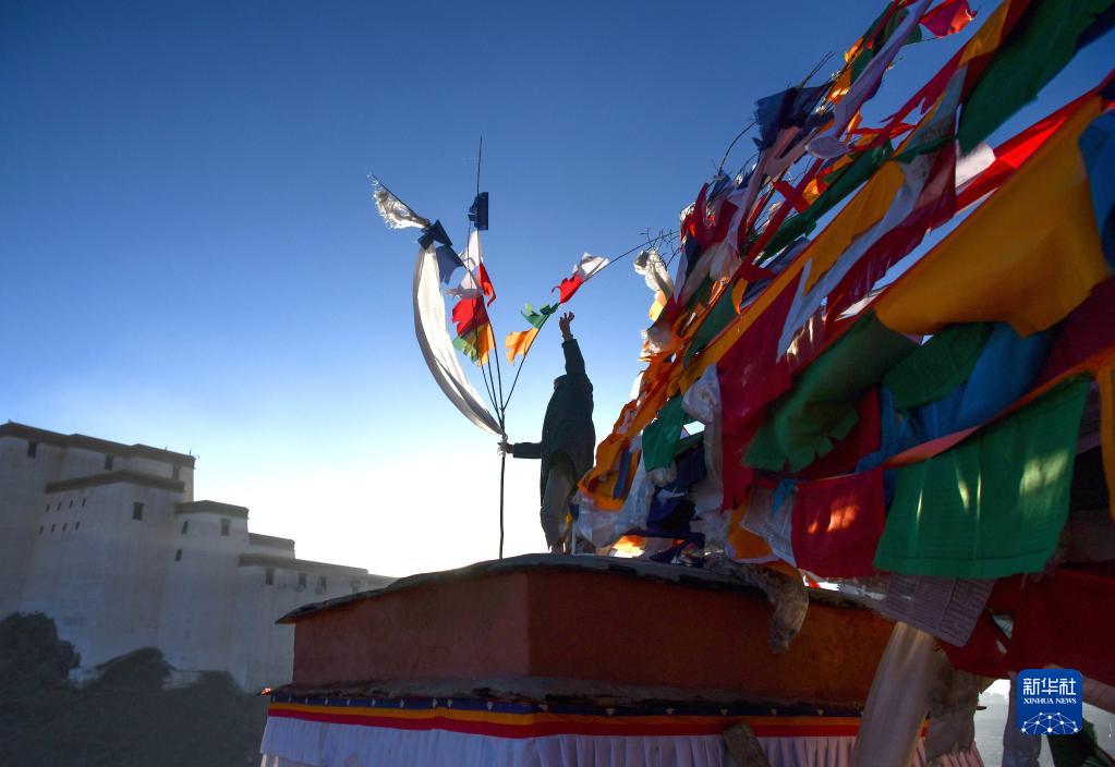 西藏日喀則地方藏歷農(nóng)家新年期間,藏族群眾沿襲傳統(tǒng),一大早就在山頂和自家屋頂上豎起新經(jīng)幡,祈愿新年風(fēng)調(diào)雨順、國泰民安。