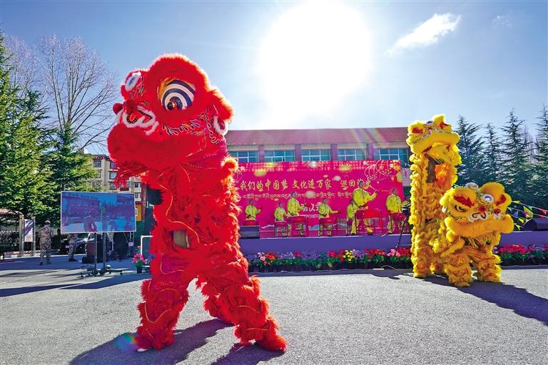 武警西藏總隊拉薩支隊官兵表演舞獅。 通訊員 張啟 記者 格桑倫珠 攝
