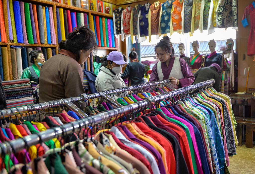 記者看到,古城大街小巷置辦年貨的人群摩肩接踵,市場(chǎng)上酥油、“卡塞”、人參果、五彩青稞穗等藏族傳統(tǒng)年貨應(yīng)有盡有,來自祖國大江南北的特色產(chǎn)品豐富充裕。