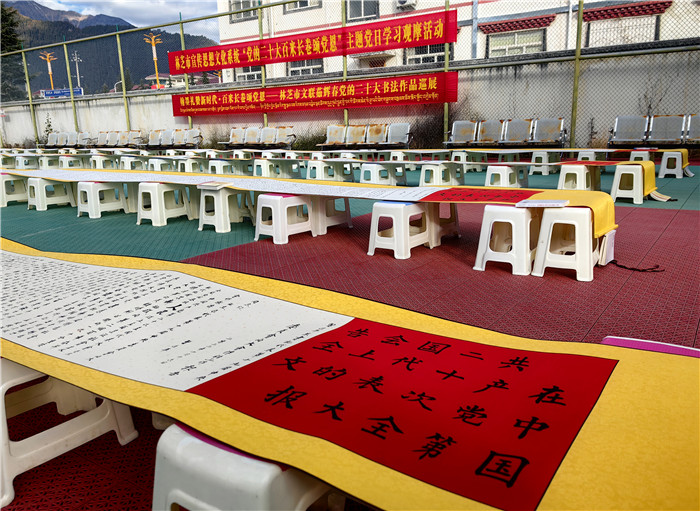 創(chuàng)新載體,全方位宣傳。林芝市統(tǒng)籌各類宣傳資源,線上線下同頻共振,全方位、多角度、寬領(lǐng)域、深層次宣傳黨的二十大精神和區(qū)黨委十屆三次全會(huì)、市委二屆三次全會(huì)精神,營(yíng)造學(xué)習(xí)宣傳的濃厚氛圍。一是新聞宣傳強(qiáng)信心。林芝報(bào)、林芝廣播電視臺(tái)、西藏林芝網(wǎng)、微林芝等市屬主流媒體紛紛開設(shè)《學(xué)習(xí)貫徹黨的二十大》《新時(shí)代新征程新偉業(yè)》等多個(gè)專題專欄,持續(xù)推出學(xué)習(xí)貫徹黨的二十大精神相關(guān)報(bào)道。截至目前,共刊播《基層宣講員讓黨的二十大精神翩翩飛入百姓家》《軍民共話美好未來 繪就美麗鄉(xiāng)村新畫卷》等相關(guān)新聞2500余條。二是社會(huì)面宣傳筑同心。采取“屏、板、欄、幅”立體宣傳方式,在全市各級(jí)黨政機(jī)關(guān)和企事業(yè)單位大門LED電子顯示屏以及市、縣城區(qū)主要街道、跨街龍門、出租車頂燈、汽車站等公共場(chǎng)所的宣傳媒介上滾動(dòng)播放自治區(qū)統(tǒng)一印發(fā)的宣傳標(biāo)語1.2萬余條次,更新懸掛國(guó)旗3.5萬余面,制作發(fā)放宣傳海報(bào)1.5萬張、宣傳品2500余個(gè),形成抬頭可見、隨處可學(xué)的濃厚社會(huì)氛圍。察隅縣上察隅鎮(zhèn)遲巴村村“兩委”和駐村工作隊(duì)用彩色粉筆繪制黨的二十大、“新黨章”等主題黑板報(bào),用畫筆向村民傳遞黨的最新政策,深受群眾喜愛。三是網(wǎng)絡(luò)宣傳聚民心。充分發(fā)揮新媒體平臺(tái)宣傳形式豐富的特點(diǎn),持續(xù)推送重磅報(bào)道和重點(diǎn)文章,策劃打造一批融媒體產(chǎn)品,在全網(wǎng)迅速興起學(xué)習(xí)宣傳貫徹會(huì)議精神熱潮。市委網(wǎng)信辦策劃制作短視頻《學(xué)習(xí)黨的二十大精神 談心得感悟》、“林芝融媒”抖音號(hào)推出《二十大時(shí)光》微視頻,將鏡頭對(duì)準(zhǔn)二十大代表、基層黨員群眾,展現(xiàn)全市干部群眾積極向上的良好風(fēng)貌。“巴宜融媒”抖音號(hào)推出“黨的二十大精神快問快答”系列活動(dòng),線上線下聯(lián)動(dòng)學(xué)習(xí),推動(dòng)黨的二十大精神入腦入心?!安煊缛诿健倍兑籼?hào)策劃開展《鄉(xiāng)村振興正當(dāng)時(shí)》黨的二十大主題抖音直播活動(dòng),通過網(wǎng)絡(luò)直觀展現(xiàn)新時(shí)代察隅新農(nóng)村、新氣象、新希望。目前已開展7場(chǎng)直播活動(dòng),觀看人數(shù)達(dá)10萬人次。四是文藝宣傳暖人心。充分發(fā)揮市、縣(區(qū))、村三級(jí)文藝文化團(tuán)體作用,組織開展“深入生活 扎根人民”“幸福不忘共產(chǎn)黨 陽光路上夢(mèng)起航”等各類文藝文化活動(dòng),精心打造文藝精品力作,用文藝活動(dòng)、文藝作品溫暖人心。截至目前,各級(jí)文藝演出隊(duì)開展文藝匯演293場(chǎng)次,參與人數(shù)4.2萬余人次;創(chuàng)作推出音樂作品《沐浴幸?!?、攝影作品《我和國(guó)旗》、書法美術(shù)作品《建功新時(shí)代 奮進(jìn)新征程》、文學(xué)作品《黨的光輝照萬家》等文藝作品300余個(gè)。波密縣完全小學(xué)在崗云杉林景區(qū)組織開展“學(xué)習(xí)黨的二十大,爭(zhēng)做好少年”采風(fēng)寫生活動(dòng),學(xué)生們以文藝創(chuàng)作的形式學(xué)習(xí)黨的二十大精神,并將學(xué)習(xí)成果轉(zhuǎn)化到作品中。市民族藝術(shù)團(tuán)以深入挖掘歷史文化、講好紅色故事為主題,籌拍了微電影《立定村屹立的紅旗》。市文聯(lián)書法美術(shù)家協(xié)會(huì)理事茹輝春同志,在黨的二十大召開后用行、楷兩種書法形式撰寫了黨的二十大報(bào)告全文書卷,書卷共有八卷,每卷長(zhǎng)30米。市委宣傳部、市文廣局、市文聯(lián)組織市書法美術(shù)家協(xié)會(huì)開展“禮贊二十大·送福進(jìn)萬家”林芝市2023年新春書法美術(shù)家“深入生活 扎根人民”送祝福和采風(fēng)活動(dòng),共開展送春聯(lián)活動(dòng)15場(chǎng)次,送出對(duì)聯(lián)、福字、掛軸、繪畫等作品8950幅(對(duì)),服務(wù)群眾6700余人次。