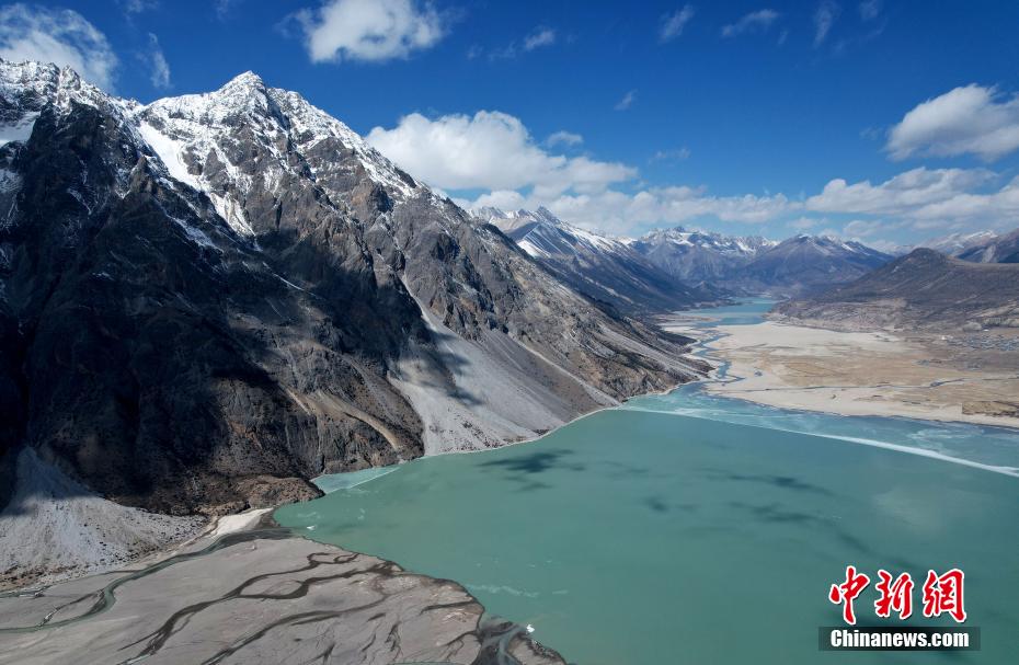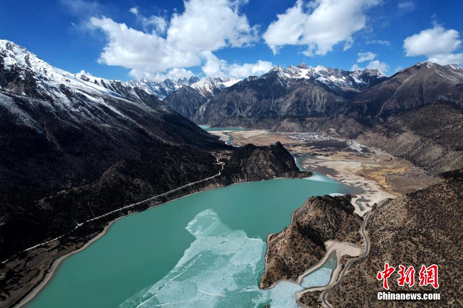 然烏湖位于西藏昌都市八宿縣,是山體滑坡或泥石流堵塞河道而形成的堰塞湖。時下,然烏湖半冰半水的湖面與雪山、藍(lán)天相互映襯,如畫一般,美不勝收。圖為2月16日,西藏昌都然烏湖。(無人機(jī)照片)