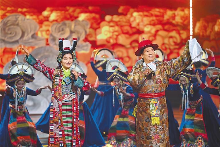2023年藏歷水兔新年聯(lián)歡晚會(huì)于2月20日晚在拉薩舉行。這是西藏廣播電視臺(tái)首次實(shí)現(xiàn)高清直播藏晚。圖為晚會(huì)現(xiàn)場(chǎng)。記者 旦增西旦 攝