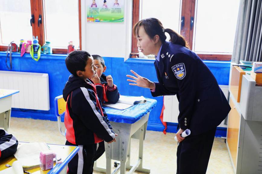 對于生活在大山深處的孩子們來說,外面的世界充滿吸引力,張騰心和侯莉就是他們與外面世界連結的橋梁。因此,去學校上課是她們日常工作中最重要的一個環(huán)節(jié)?!拔覀兌己芟矚g警察媽媽,教我們寫作業(yè),給我們買零食,還會講很多有趣的故事。”8歲的扎西開心地說。