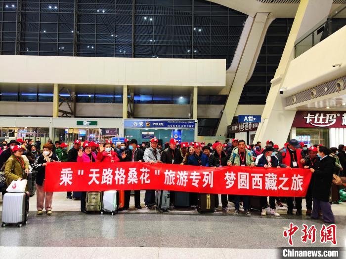 3月1日23時20分,開往拉薩的“天路格?;ā魣A西藏”Y971次旅游專列從西寧站緩緩開出,滿載著672名來自中國各地的游客開啟為期10天的西藏之旅。據(jù)悉,這是中國鐵路青藏集團有限公司(簡稱“青藏集團公司”)2023年組織開行的首趟大型進藏旅游專列。