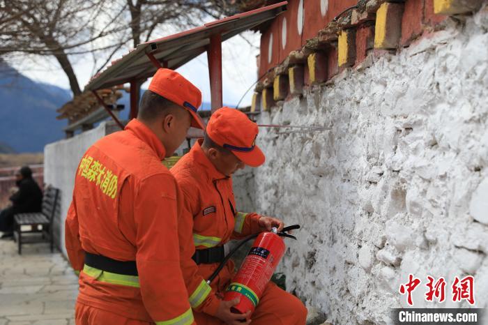 森林消防隊員正在排查寺廟火災(zāi)隱患。 西繞拉翁 攝
