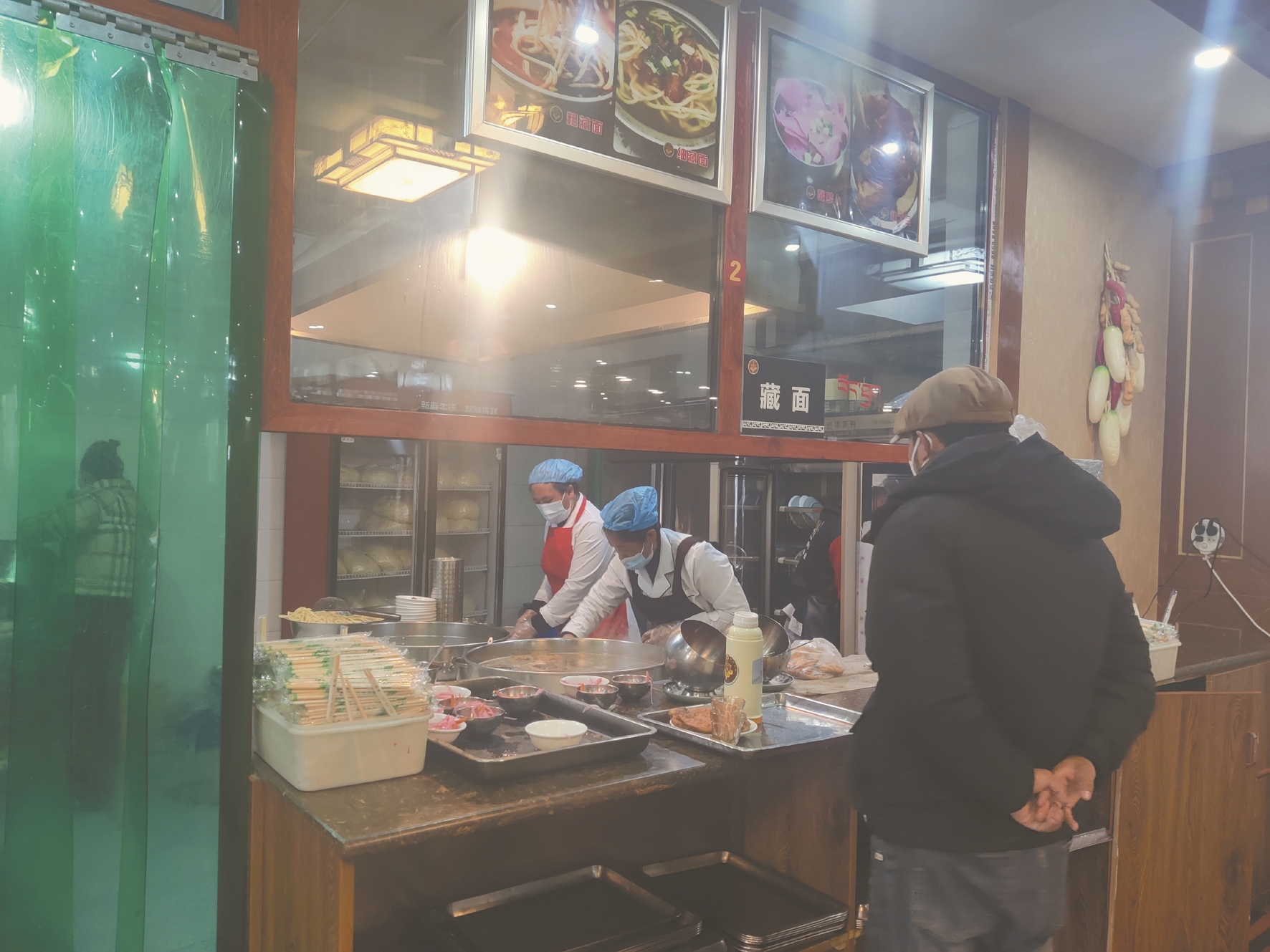 記者在桑曲茶館看到,店內(nèi)分為甜茶、藏面、蓋飯三個檔口,每個檔口由國定員工負(fù)責(zé),大家身著統(tǒng)一工作服,忙而不亂,有條不紊。各檔口均為透明玻璃窗,消費者能夠直接看到餐飲食品加工制作全過程。