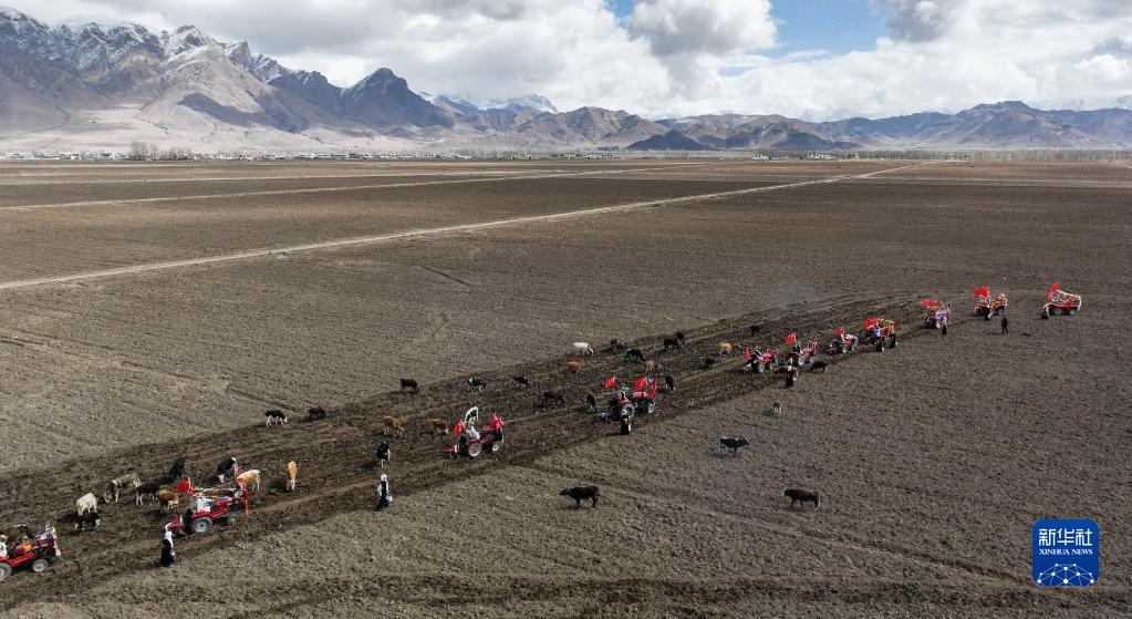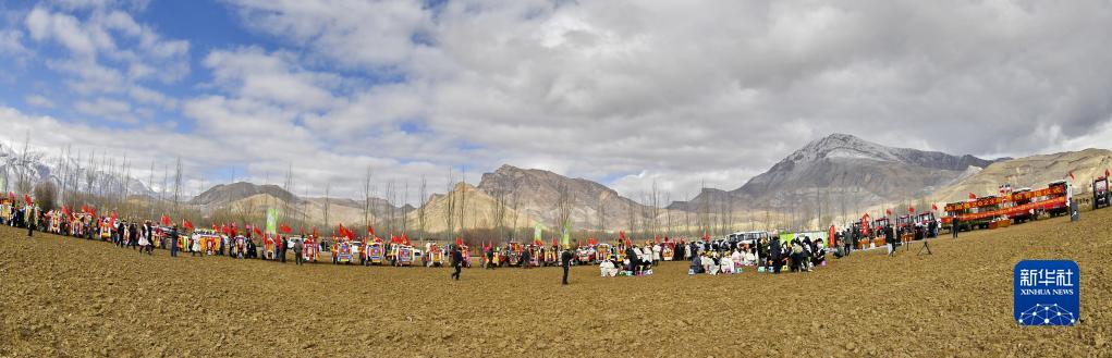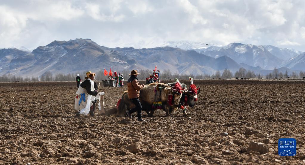 西藏拉薩市林周縣強(qiáng)嘎村的春耕儀式現(xiàn)場(chǎng)(3月16日攝)。新華社記者 晉美多吉 攝