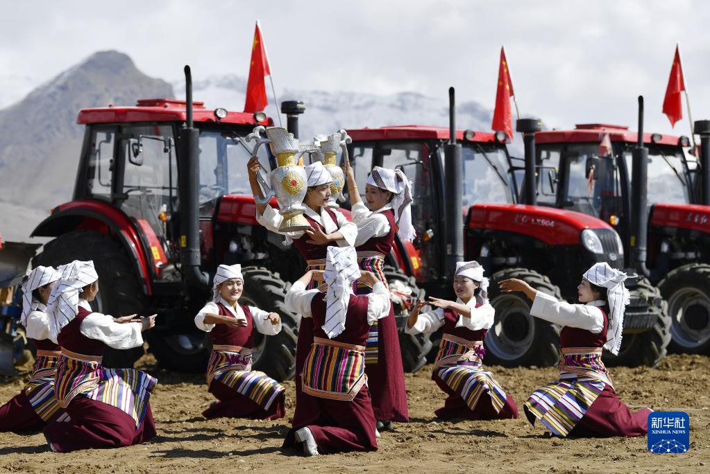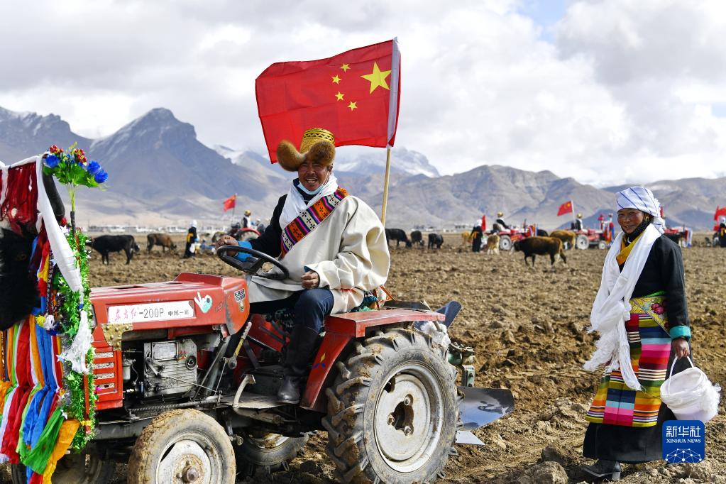 西藏林周縣強(qiáng)嘎村的春耕儀式現(xiàn)場(chǎng)(3月16日攝)。新華社記者 張汝鋒 攝