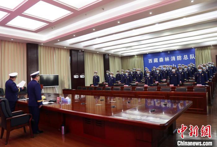 3月22日,晉升代表表態(tài)發(fā)言。 西藏森林消防總隊供圖