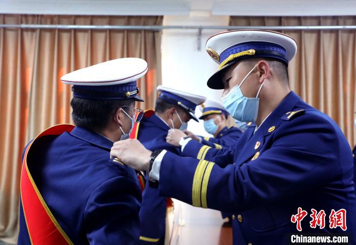 3月22日,分會場更換消防救援銜標(biāo)識?!∥鞑厣窒揽傟牴﹫D