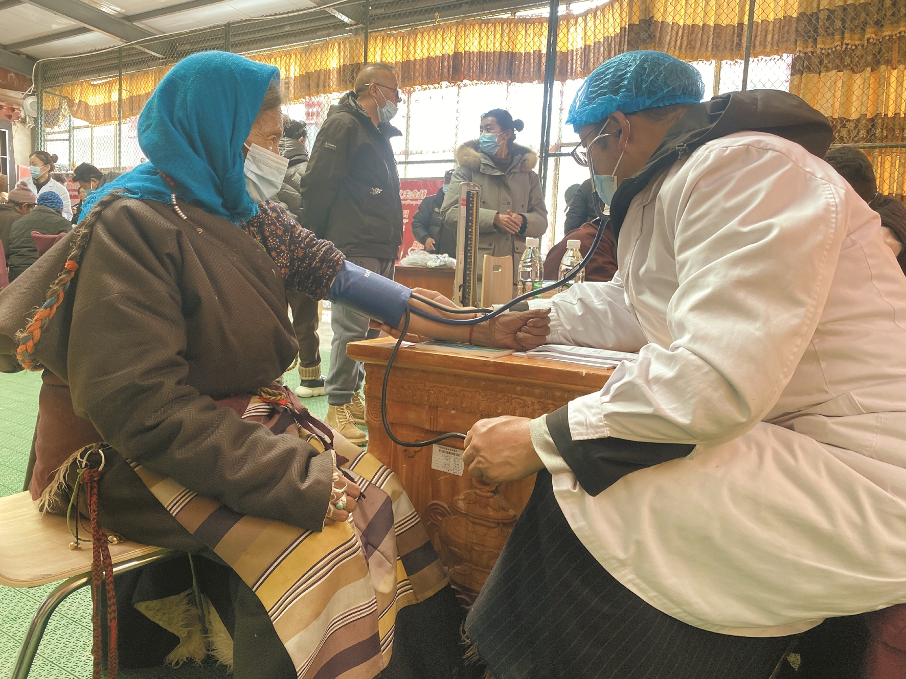 當(dāng)日,納木湖鄉(xiāng)綜合文化站內(nèi)人頭攢動(dòng),當(dāng)?shù)啬撩袢罕姷弥獊碜岳_的醫(yī)療專家前來義診,都早早地來到文化站內(nèi)等候。在義診現(xiàn)場,來自市人民醫(yī)院北京“組團(tuán)式”援藏醫(yī)療隊(duì)、城關(guān)區(qū)平衡針灸愛心志愿服務(wù)隊(duì)和利眾醫(yī)院的專家醫(yī)師們?yōu)榍皝砭驮\的群眾進(jìn)行疾病篩查、心肺聽診、測量血壓、針灸等檢查治療。診療中,醫(yī)生們仔細(xì)詢問群眾的過往病史和身體狀況,耐心細(xì)致地提出治療建議,講解注意事項(xiàng)并免費(fèi)為群眾發(fā)放所需藥物。