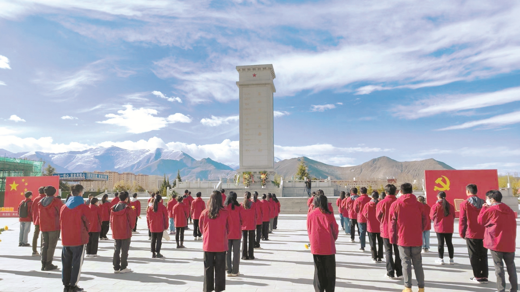 圖為四月二日,“西部計(jì)劃”西藏專(zhuān)項(xiàng)志愿者們?cè)诟锩沂考o(jì)念碑前,整齊列隊(duì),肅立默哀,深切悼念革命先烈。拉薩融媒記者 仁青拉姆攝