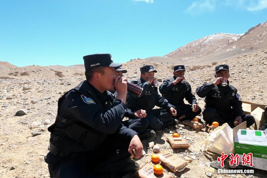 近日,西藏阿里邊境管理支隊(duì)扎西崗邊境派出所組織民警和護(hù)邊員通過乘車巡邏和徒步巡邏相結(jié)合的方式,前往海拔4800米的“守邊固邊第一村”——典角村古格川執(zhí)勤點(diǎn)巡邏,經(jīng)過一個小時的車巡和一個小時的徒步巡邏,民警到達(dá)了古格川執(zhí)勤點(diǎn)。通過巡邏,及時掌握了邊境一線情況,確保了邊境轄區(qū)安全穩(wěn)定。圖為移民管理警察巡邏途中休息。郭遠(yuǎn)敬 攝