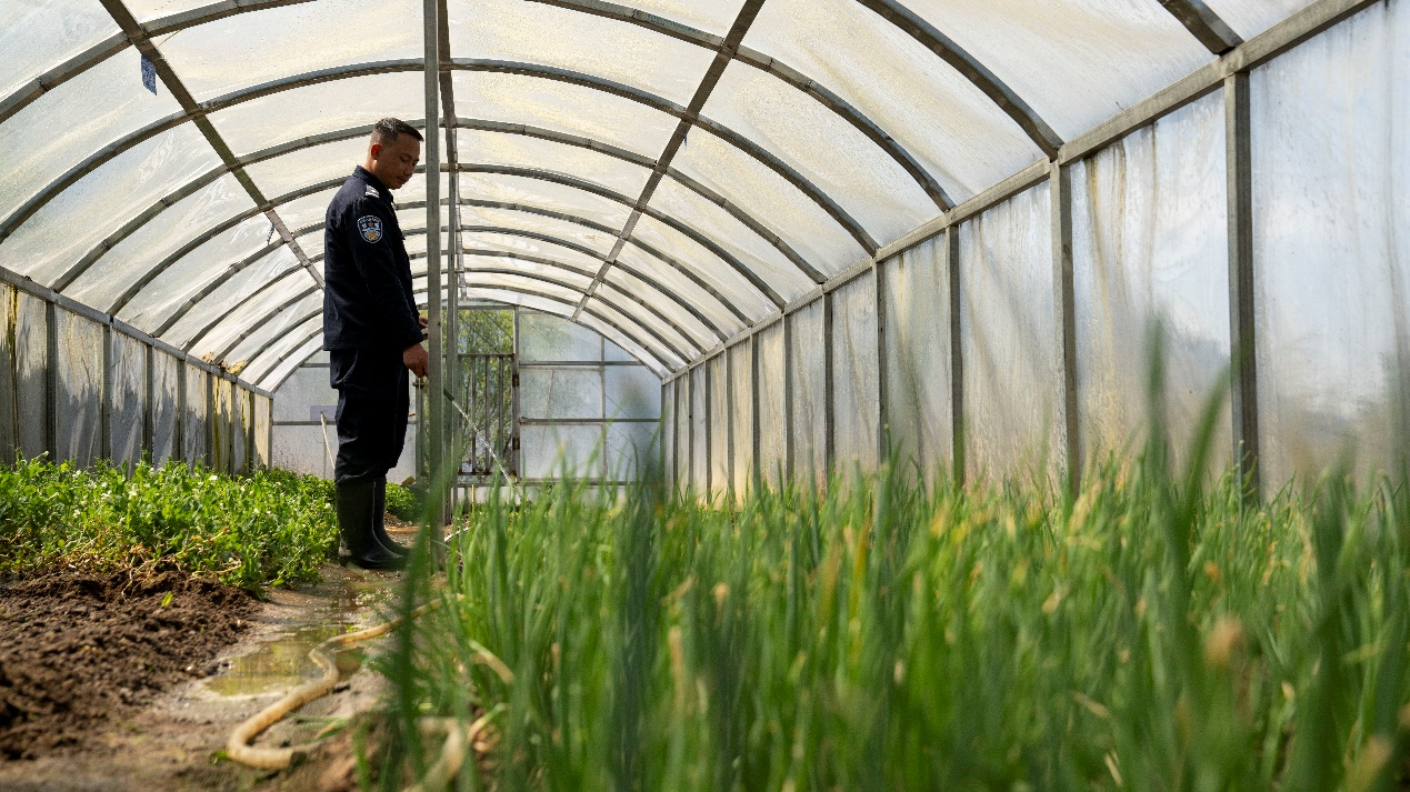 雖然巡邏路上艱險萬分,但民警早已把這里當成了自己的家,工作之余還搭建了溫室大棚,種植大白菜、豌豆尖、西紅柿等蔬菜。在漫長的邊境線上,派出所民警緊密團結(jié)在一起,繼續(xù)走在巡邏路上。