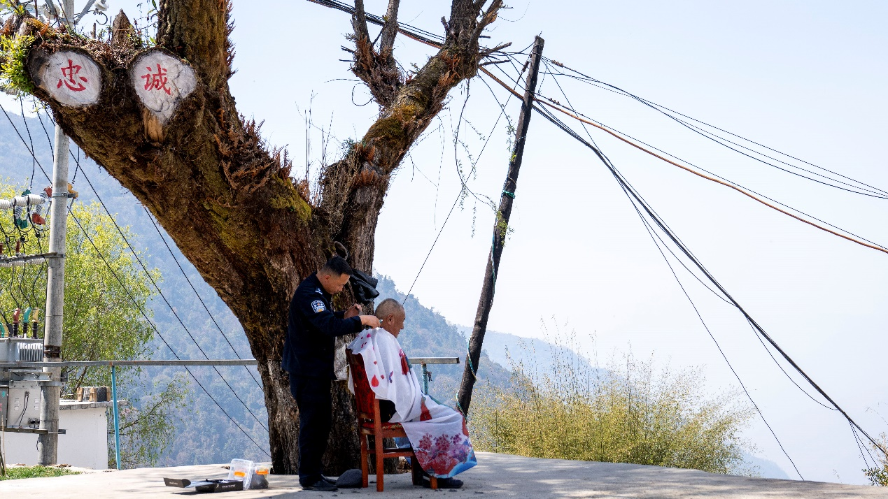 轄區(qū)村民和派出所民警關(guān)系很要好,民警日常走訪群眾時,經(jīng)常會為群眾送去罐頭、蔬菜等生活物資。就在記者采訪當天,轄區(qū)村民次仁堅參來找民警幫忙理發(fā),“咱們警民是一家嘛,我對咱們民警的理發(fā)技術(shù)很放心!”次仁堅參笑著說。