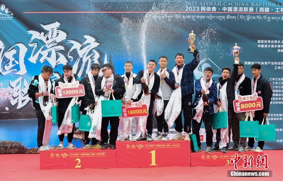 圖為激流漂流筏繞標賽頒獎典禮現(xiàn)場。中新社記者 貢嘎來松 攝
