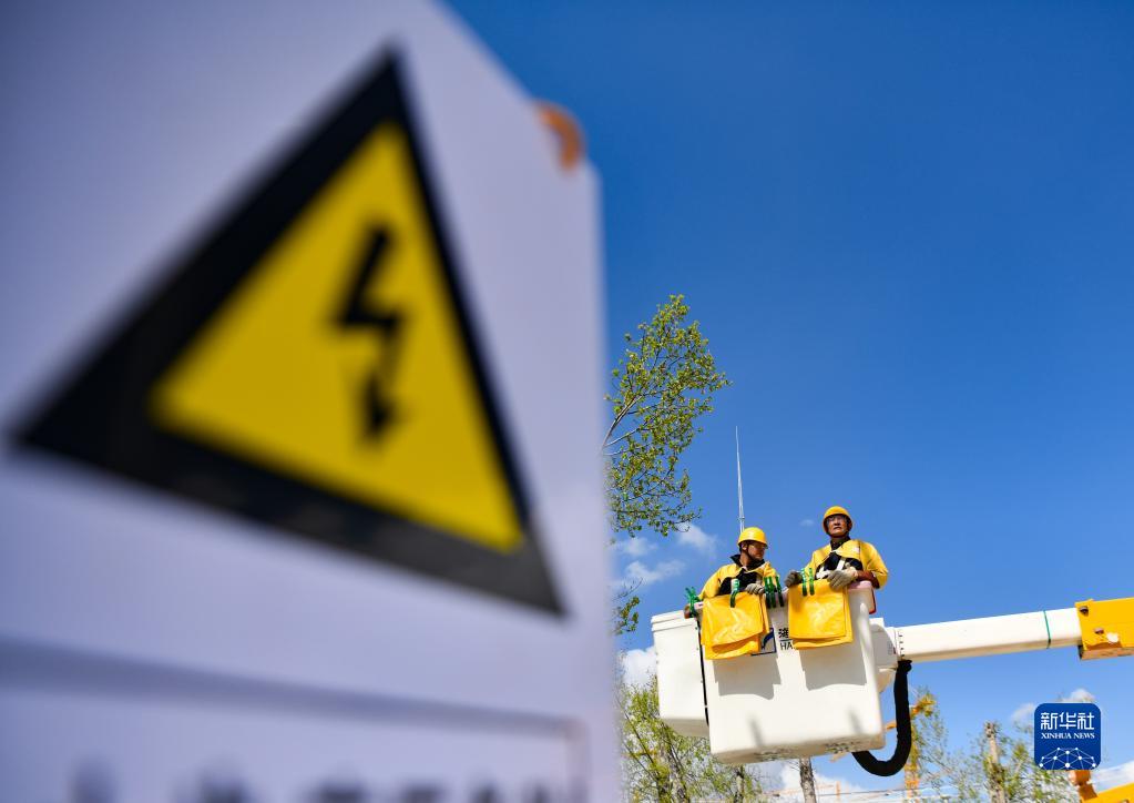 4月26日,扎西尼瑪(左)在進(jìn)行絕緣電阻檢測(cè)。新華社記者 劉洲鵬 攝
