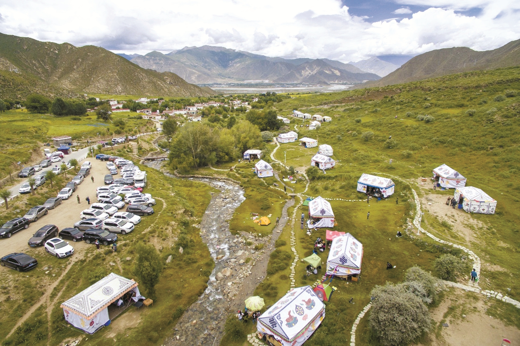 圖為達東村林卡里錯落有致的帳篷。 (達東鄉(xiāng)村民俗文化旅游有限公司供圖)