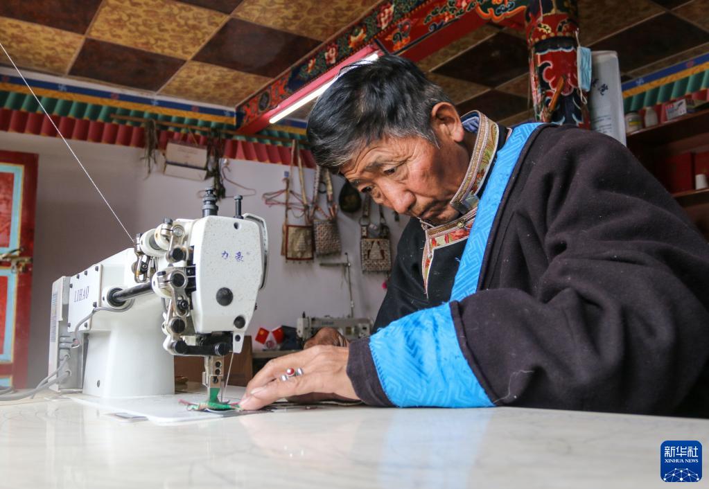 61歲的索朗群培回憶,他小時(shí)候見到村里的大人騎在有馬包的馬上,特別威風(fēng),讓他對(duì)制作馬包產(chǎn)生了濃厚興趣。21歲時(shí),他師從當(dāng)?shù)乩纤嚾硕嗖冀軐W(xué)習(xí)馬包制作技藝。如今,他已是林芝市第一批市級(jí)非物質(zhì)文化遺產(chǎn)項(xiàng)目中馬包手工制作技藝的傳承人。