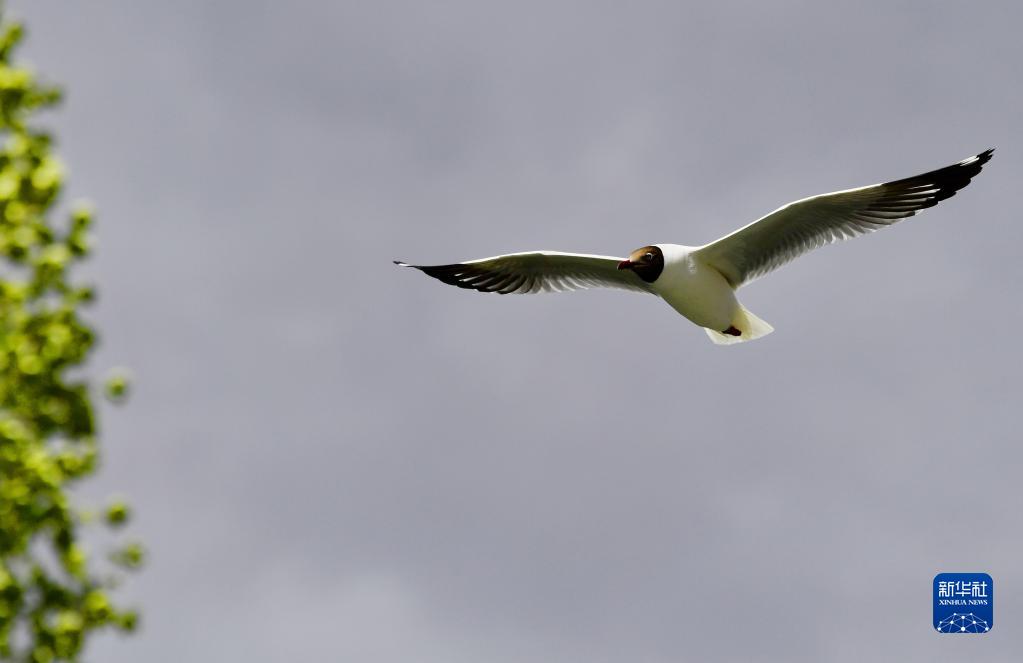 棕頭鷗在拉魯濕地上空盤旋(5月6日攝)。新華社記者 張汝鋒 攝