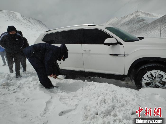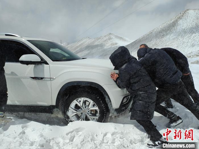 民警隨即打火發(fā)動(dòng)警車,行至被困車輛前面,利用拖車?yán)K連接警車與被困車輛,其余救援人員雙手搭上車輛用力向前推,“一、二、三,加油!”“動(dòng)了,動(dòng)了,車子可以向前移動(dòng)了。”鏟除積雪、鋪撒砂石、推拉車輛……接下來救援人員用同樣的方法開始拖出其余車輛,3個(gè)多小時(shí)后,5輛車、14名民眾全部脫離險(xiǎn)境。所有被困車輛和人員安全抵達(dá)楚魯松杰鄉(xiāng)。
